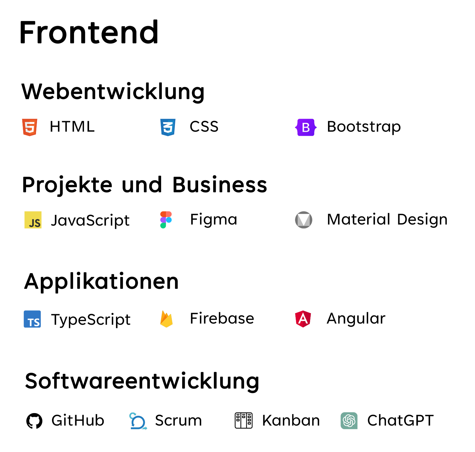 Kenntnisse, Technologien, Sprachen